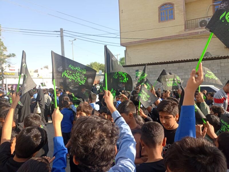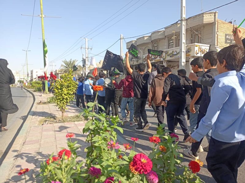 دانش‌آموزان با در دست داشتن پرچم‌های «یا فاطمه الزهرا(س)» در مسیر راهپیمایی و به عزاداری پرداختند و ارادت خود را به ساحت حضرت زهرا(س) ابراز کردند.